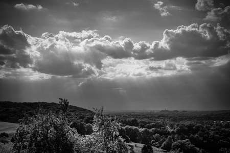 Dramatic black and white picture over the landscape to Cologne's industrial belt. under clouds.