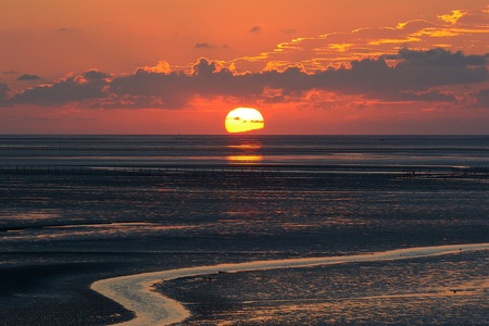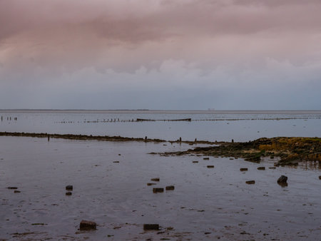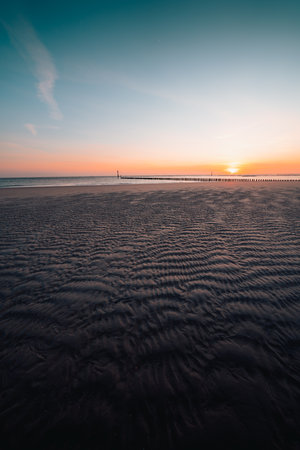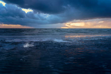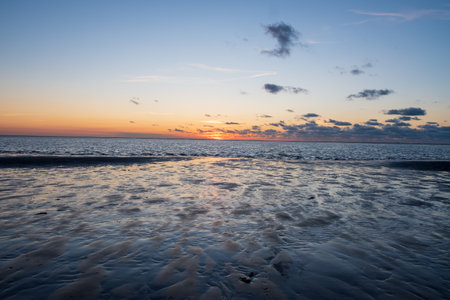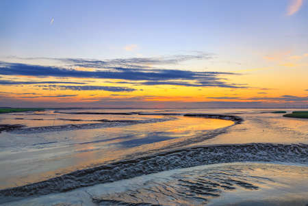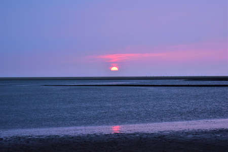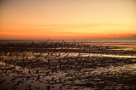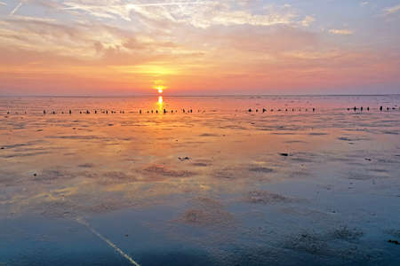 mudflats of breskens beach during sunset, Zeeland, The Netherlands