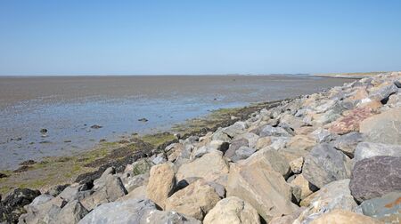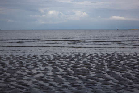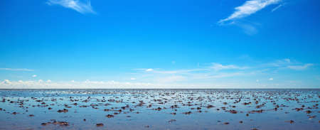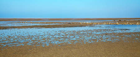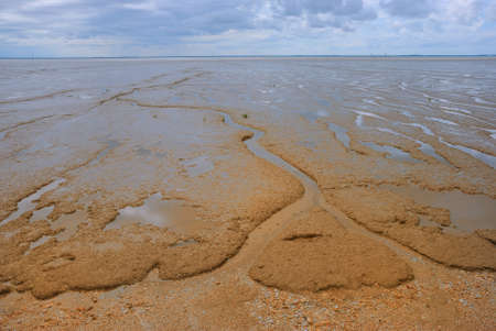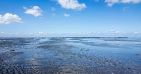 View over Wadden Sea near Foehr Island at low tide with clear water pool