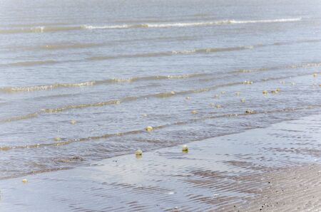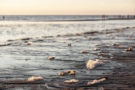 Plastic waste garbage from tourist on the beach, save the natural environment concept, selective focus
