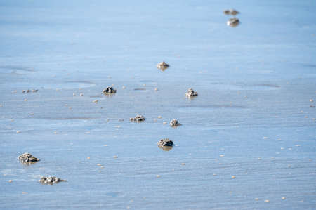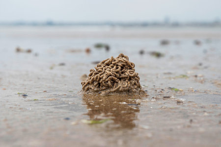 Lugworm, arenicola marina, sand casts on Shanklin Beach, Isle of Wight, Hampshire