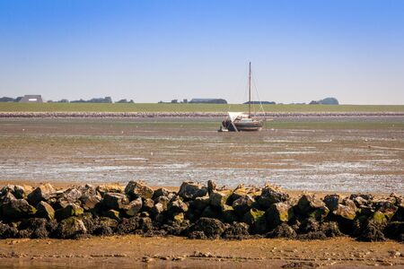 The Wadden Sea, with its fascinating interplay of high and low tide or in other words ebb and flow, gives you a great view on the soil of the sea, the boats are waiting for the new flow to sail again, picture tasks at Schiermonnikoog