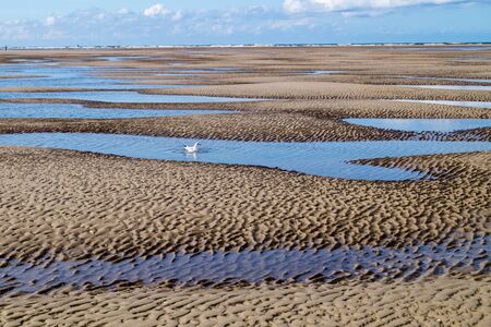 Dutch landscape, North sea sandy beach during low tide near Castricum aan Zee, winter in Netherlands