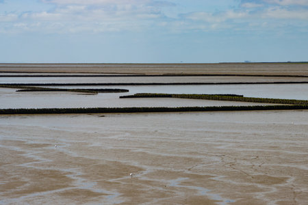 Wood barrier for land reclamation in the wadden sea, north sea Germany