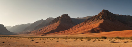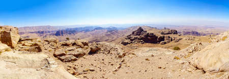 Panoramic view of desert mountain landscape, near Petra, in Southern Jordan