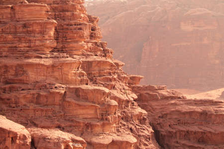Red mountains of the canyon of Wadi Rum desert in Jordan.