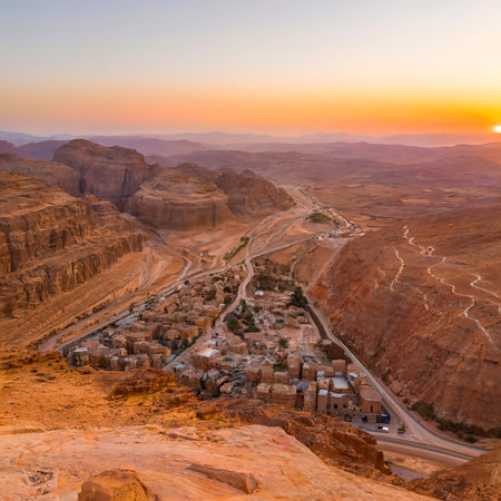 panorama of wadi mujib canyon at sunset, Jordan.