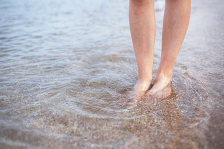 barefoot in sand and water on beach in summer holidays relaxing