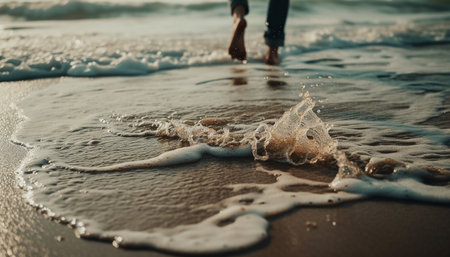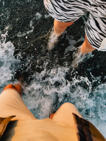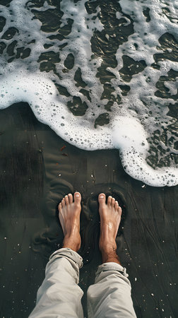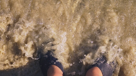 Feet in Waves Enjoying a Truly Relaxing Day at the Beautiful Beach and Oceanic Shores