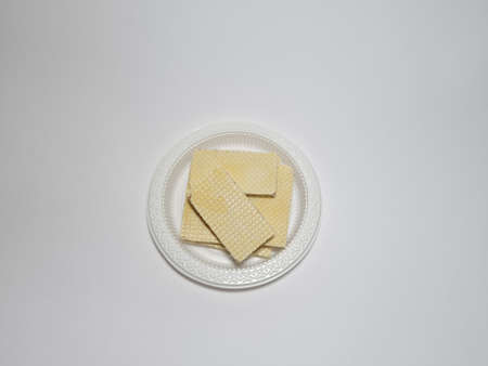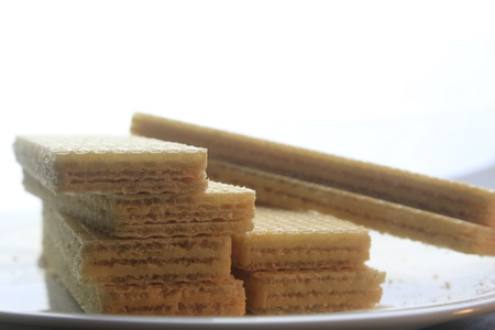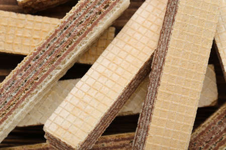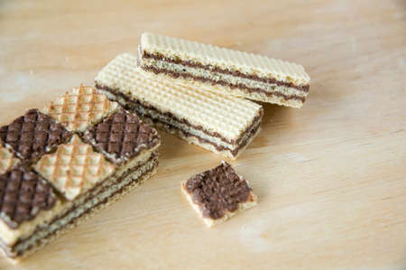 Wafers or honeycomb chocolat and Milk waffles isolated on wood background