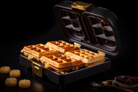 fresh waffle iron presenting a newly baked waffle inside, created with generative ai