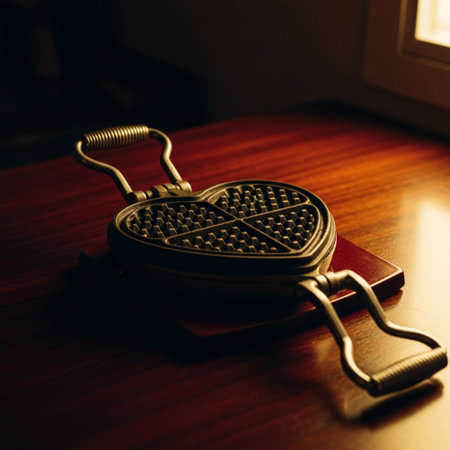 Norwegian heart shaped waffle maker on granite kitchen worktop
