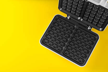 A waffle iron, an electric machine for making Belgian breakfast desserts. A waffle iron as a food background for your design