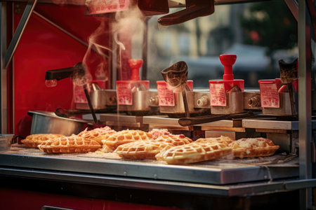 An AI generated illustration of A street vendor is hard at work preparing delicious waffles for customers to purchase at the market