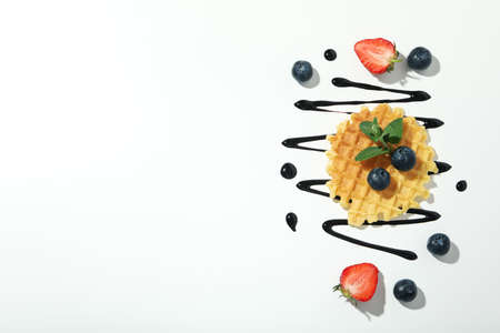 Delicious waffles placed on marble background