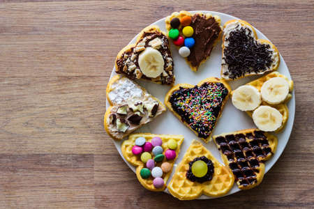 Variety of Waffles on wooden background