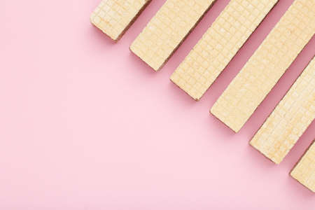 Sweet wafer sticks on pink background