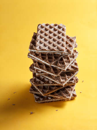 stack of wafers with filling on a bright yellow background