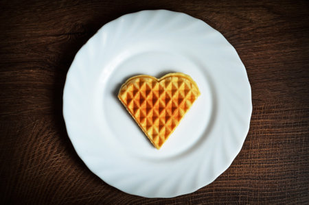Heart shaped breakfast waffle for Valentine's day romance concept