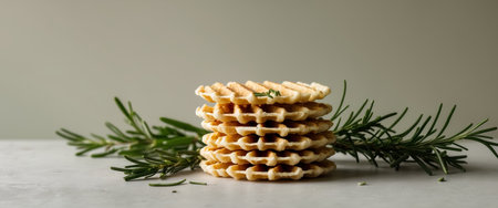 AI Generated. Rosemary Flavored Rice Waffles Healthy Snack Chips Vegetarian Herbal Delight