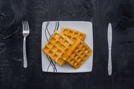 Some waffles in a plate on dark background