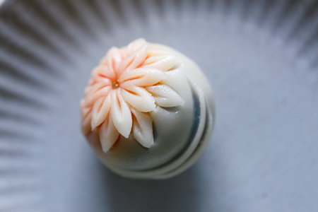 Japanese Sweets Nerikiri of various colors in a beautiful container. Ai generative
