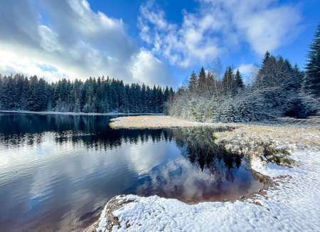 First snow by the lake, beautiful nature, Slovakia.