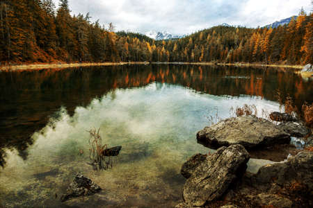 Majestic mountain lake in Fernsteinsee in Austrian Alps