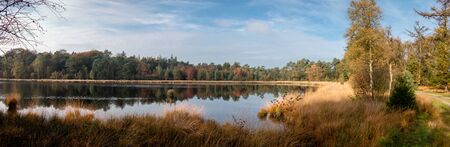 Beautiful panorama view of a bog lake in the Netherlands, Dwingelderveld national park