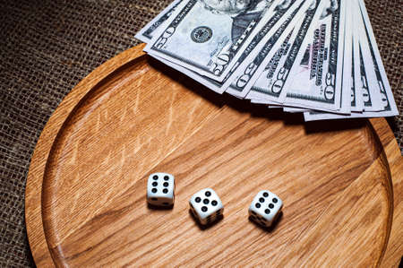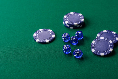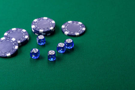Dice poker game with chips, bets and risk in casino. Dice poker as a background for your design