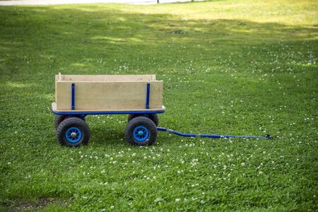 new garden cart with wheels and handles on the green grass