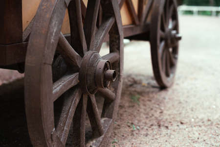 Close up view on two old coach wheel.