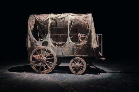 Vintage wooden wagon or carriage on the dark background