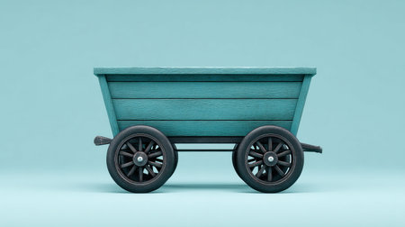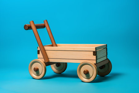 Wooden toy cart on blue background. 3d render illustration.