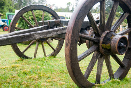 Part of ancient cart with wooden wheels