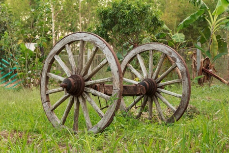 a pair of oxcart s wheels which was used for long time ago But now it s not in order