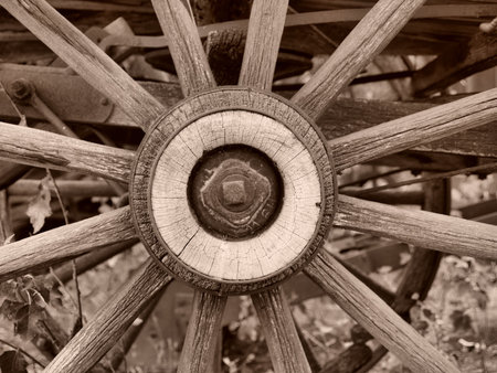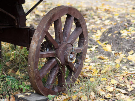 old wooden wheel used for transportation. vintage wheel
