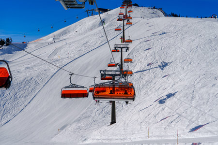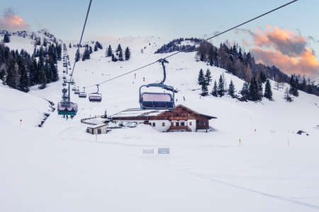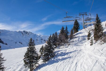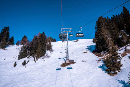 Chairlift going up the mountainside at a ski resort in the Alps, Austria