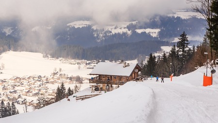 winter in Alps, Kaltenbach ski resort in Zillertal valley