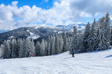 On the slopes of the ski resort Brixen im Thalef. Tyrol, Austria