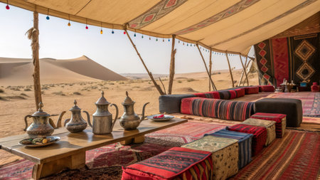Cafe in the Sahara desert, Morocco, Africa. Bedouin tent