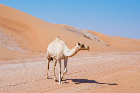 Camel in the Sahara desert, Morocco, Africa. Selective focus.