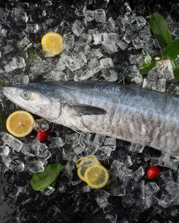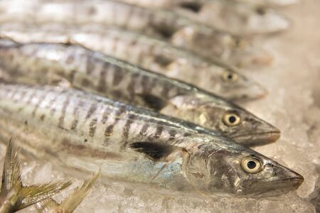 Sea fresh fish barracuda at food street market on island Koh Samui, Thailand, close up. Seafood concept. Raw barracuda for cooking