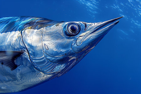 Blue marlin fish close up in the deep blue ocean. 3d rendering