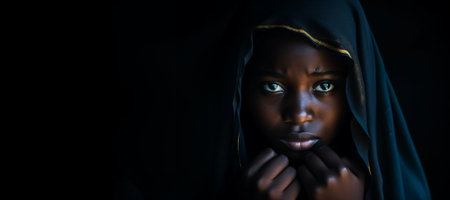 Close-up of pensive young African female face in sunlight.