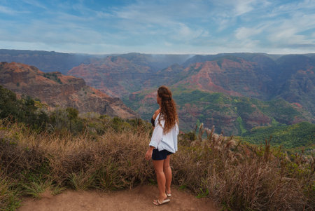 Woman Standing on Path Overlooking Waimea Canyon, Kauai Island