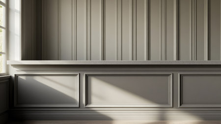 This image captures a serene interior space with elegant wall paneling, bathed in soft natural light, perfect for conveying modern design and tranquility in architecture.