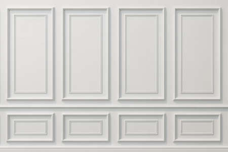 3d illustration. Classic wall of white wood panels. Joinery in the interior. Background.