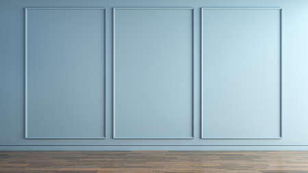Mock up room with blue and white classic wall background and brown parquet floor for copy space