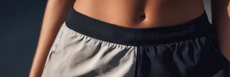 Elastic waistband detail depicts a blend of fabric colors, enhanced by soft lighting and emphasizing texture in sportswear design.